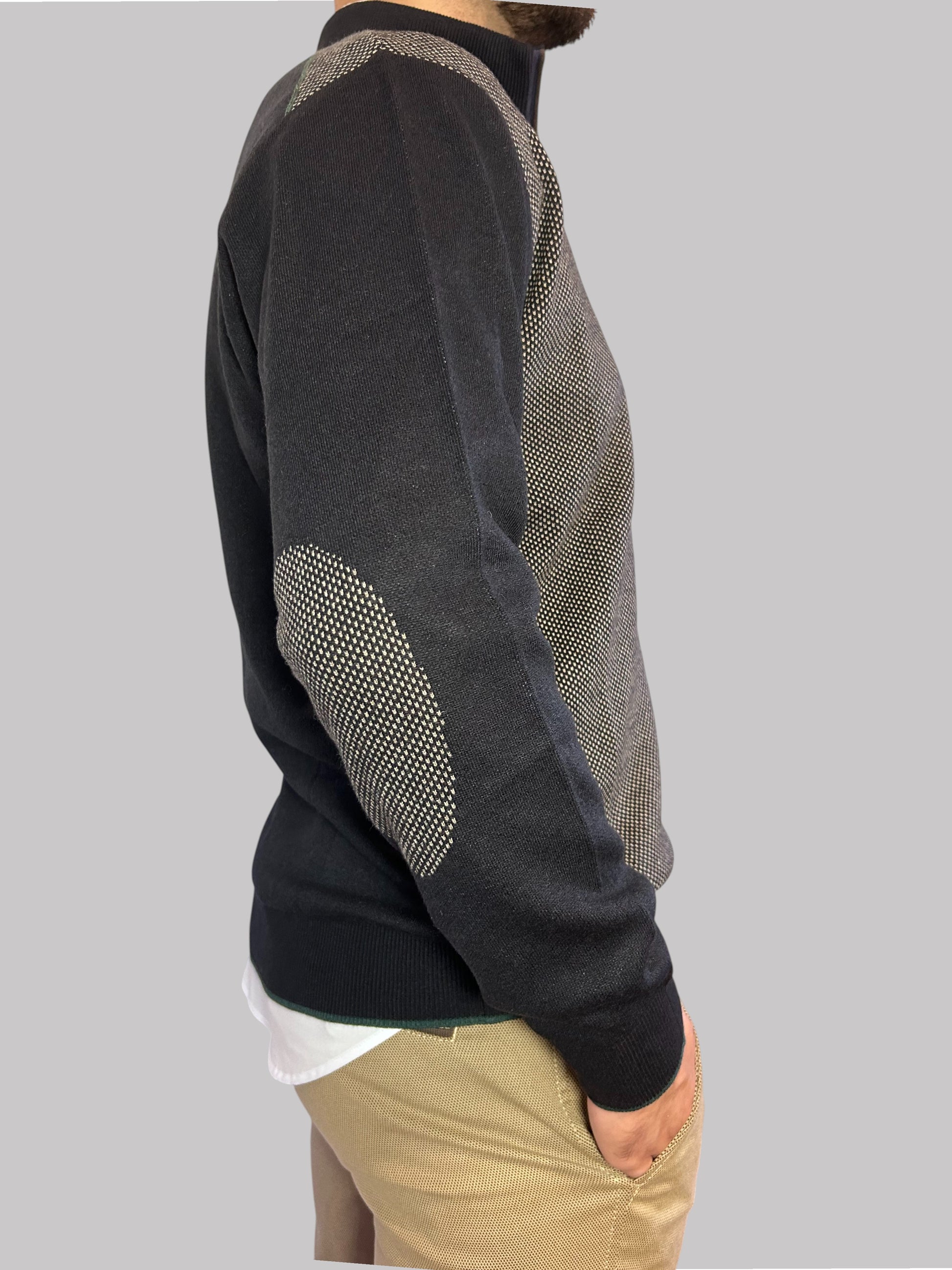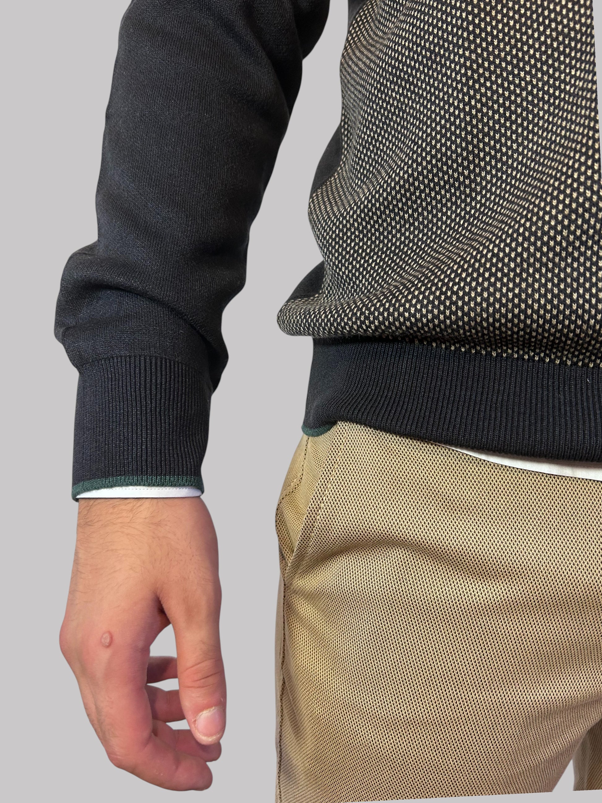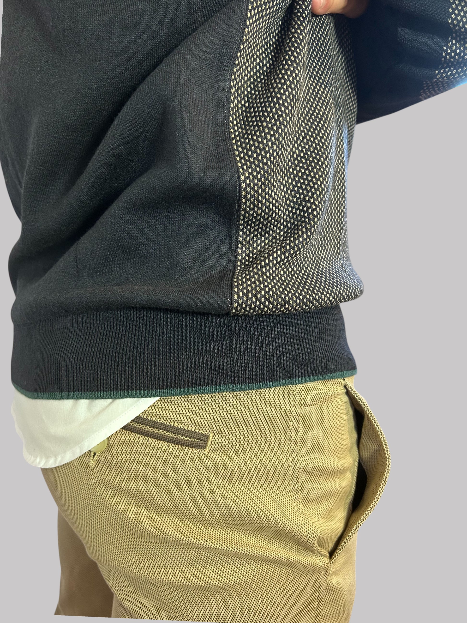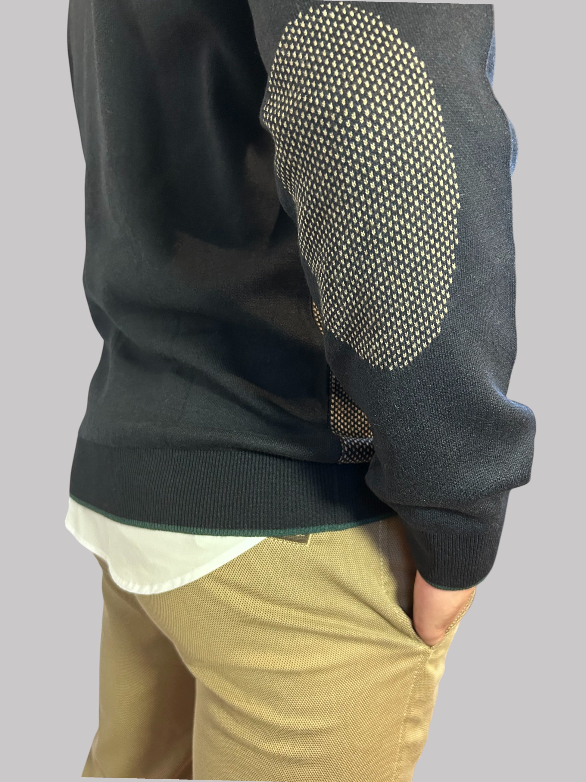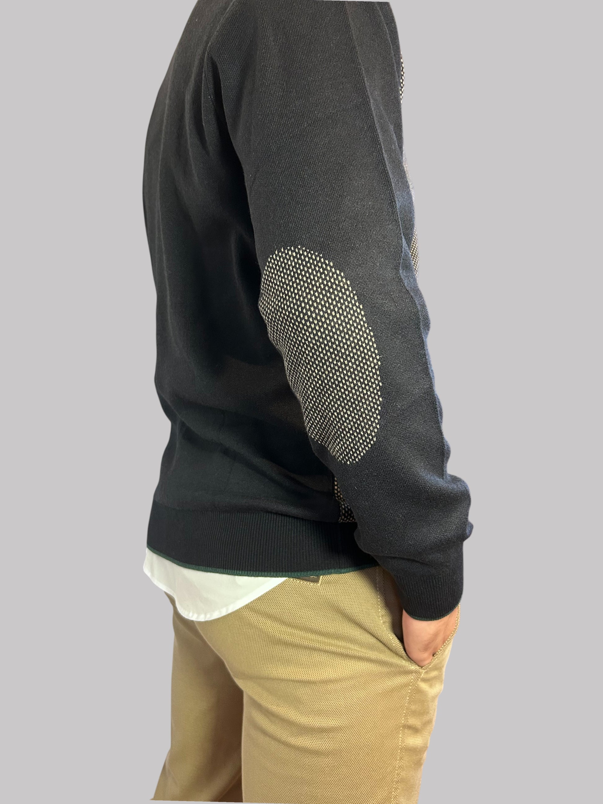 As cotoveleiras reforçadas acrescentam um toque de estilo clássico e aumentam a durabilidade da peça nas zonas de maior atrito , e com uma pequena risca discreta em verde nos punhos e na parte inferior, torna se numa peça diferenciada.