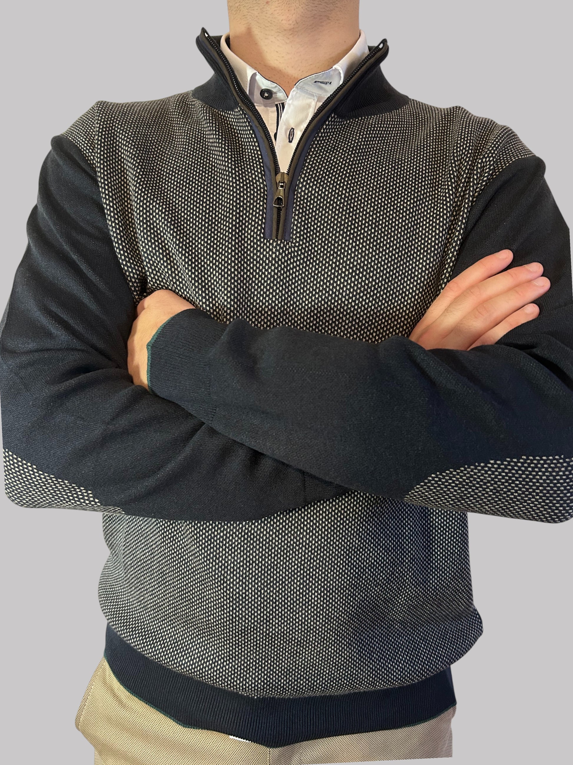 Confeccionada em Portugal, esta malha de fecho combina conforto, durabilidade e elegância casual. Produzida com uma mistura equilibrada de algodão e poliéster, oferece um toque suave ao mesmo tempo que mantém uma excelente resistência ao uso diário e fácil manutenção.