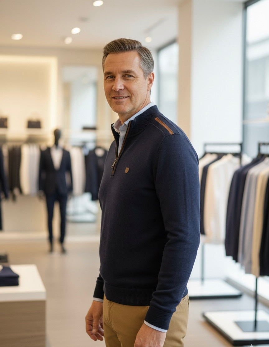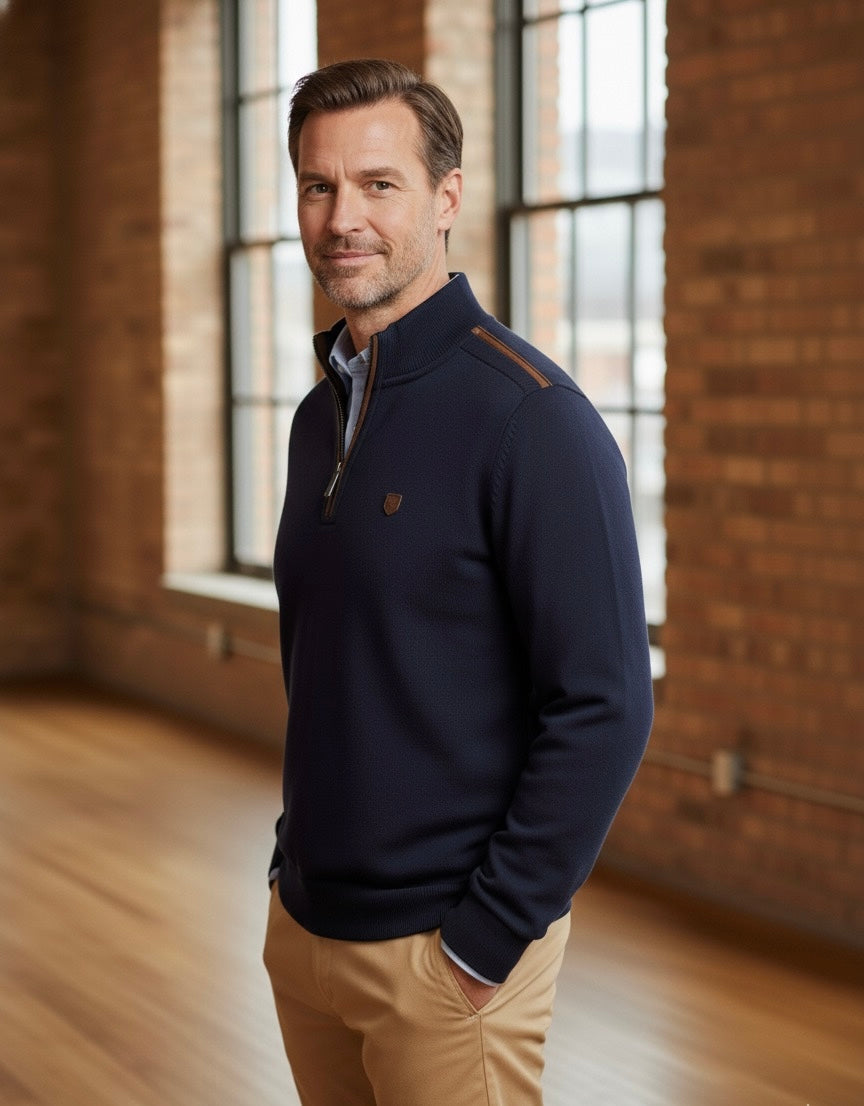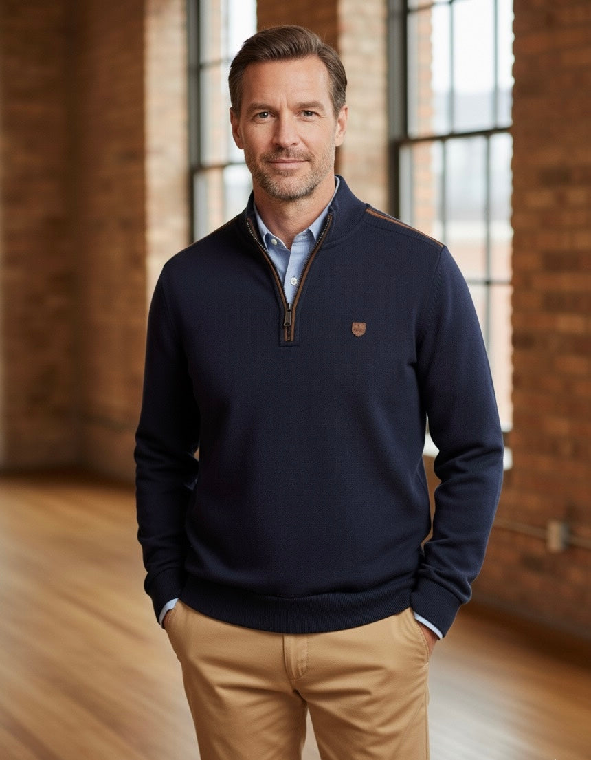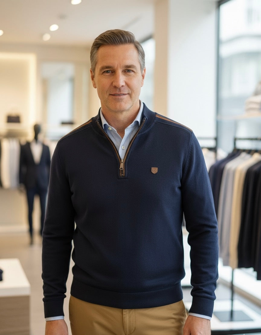 Fabricado em Portugal com materiais de qualidade superior, este pólo cardado com fecho combina conforto, estilo e praticidade. O tecido cardado oferece um toque macio e aconchegante, ideal para os dias mais frescos, enquanto a risca no ombro acrescenta um detalhe moderno e desportivo.