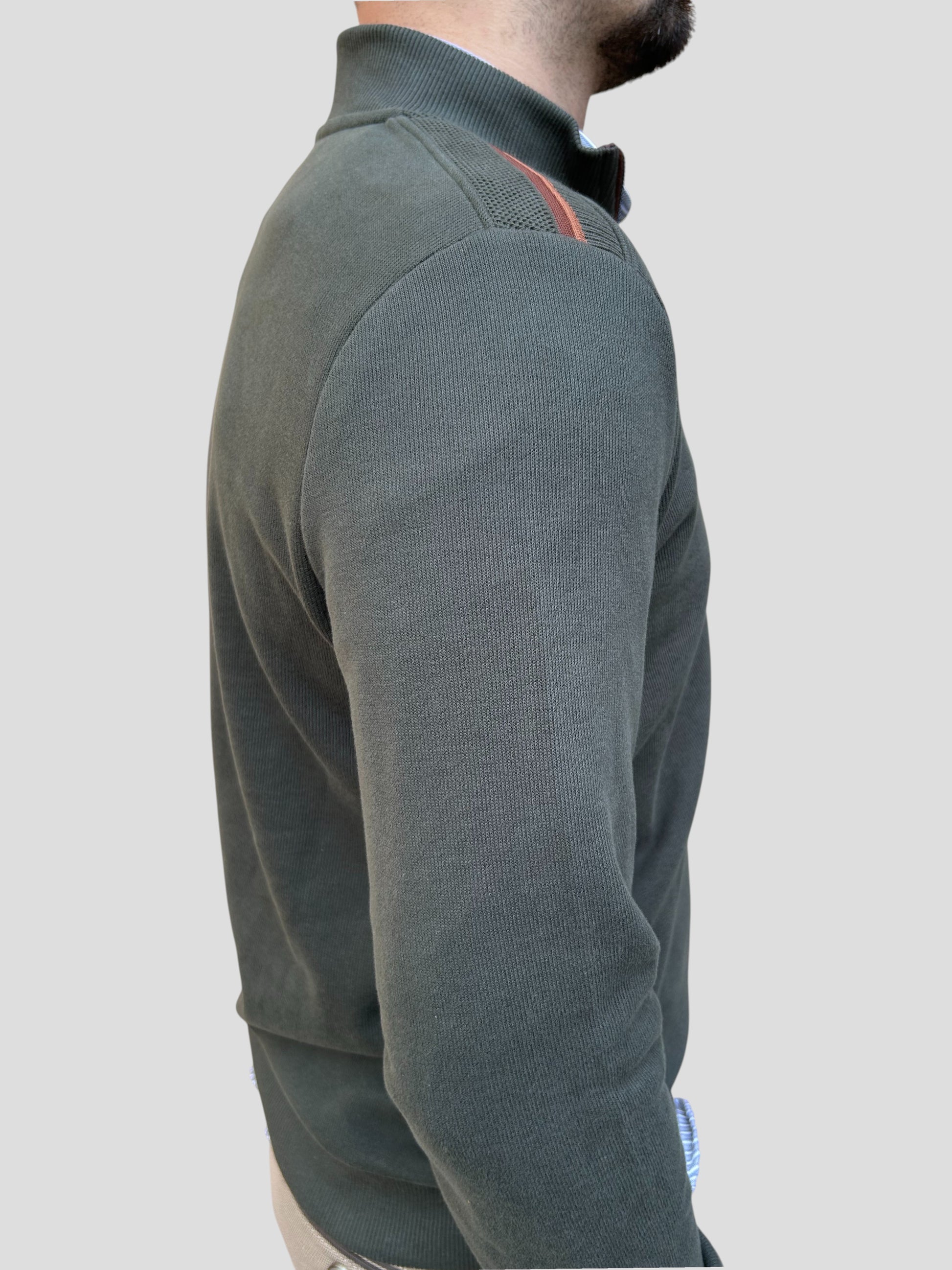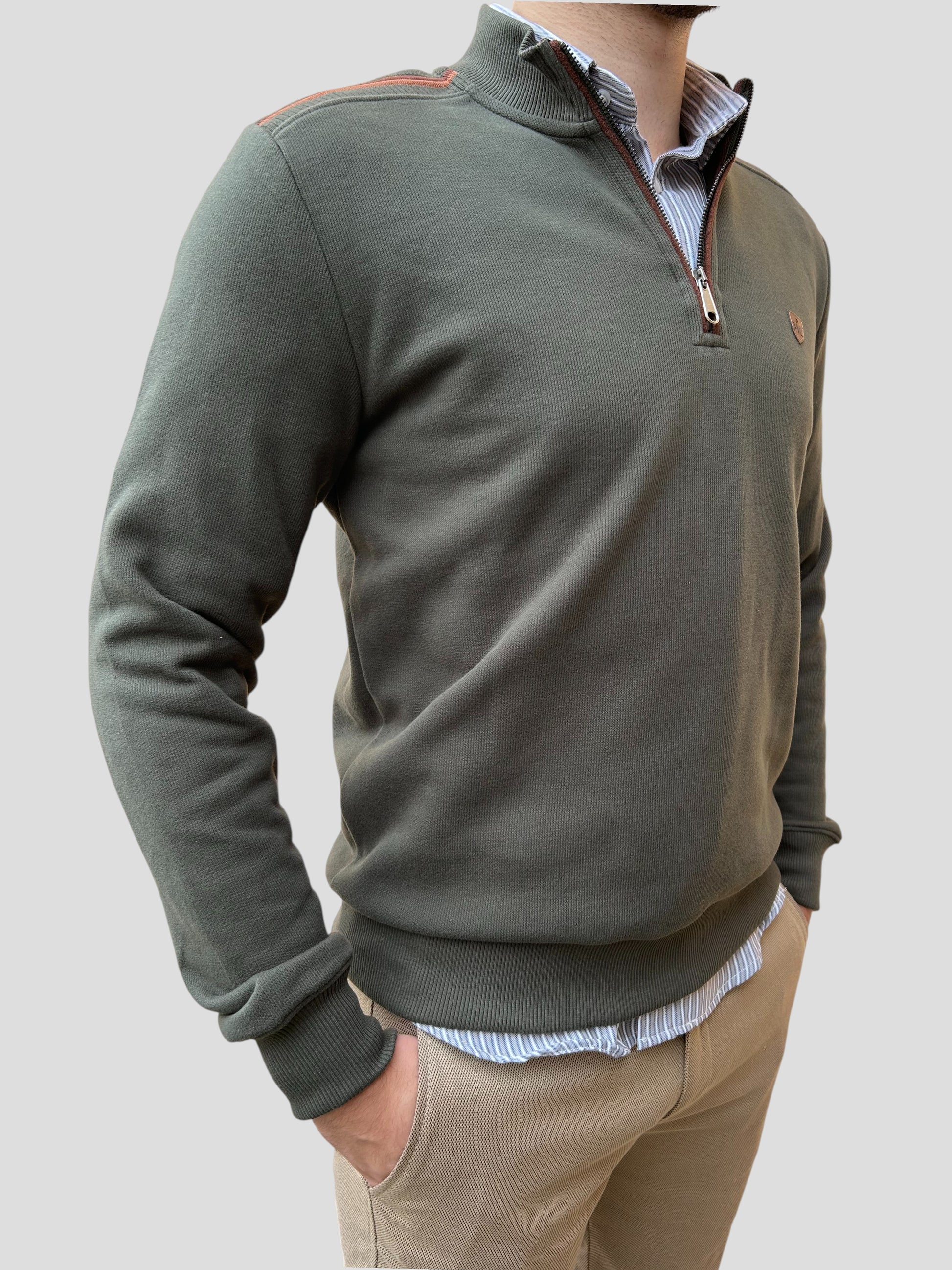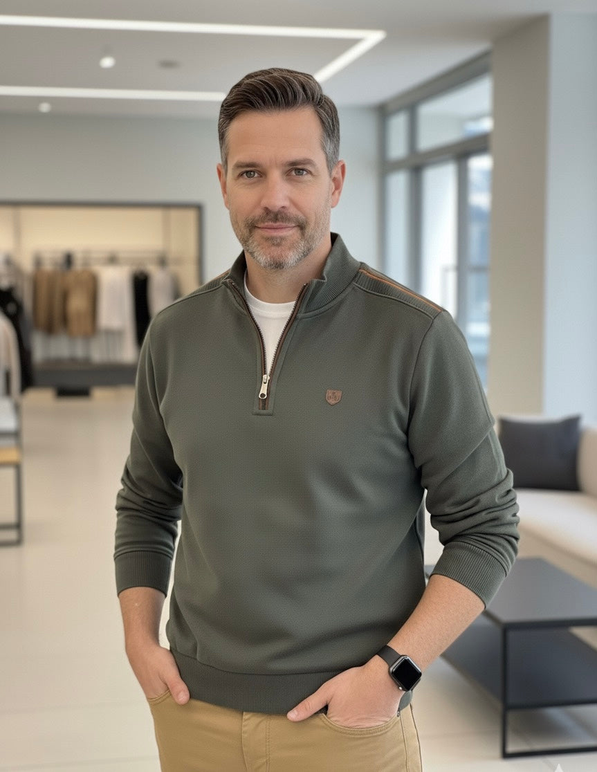 Fabricado em Portugal com materiais de qualidade superior, este pólo cardado com fecho combina conforto, estilo e praticidade. O tecido cardado oferece um toque macio e aconchegante, ideal para os dias mais frescos, enquanto a risca no ombro acrescenta um detalhe moderno e desportivo.