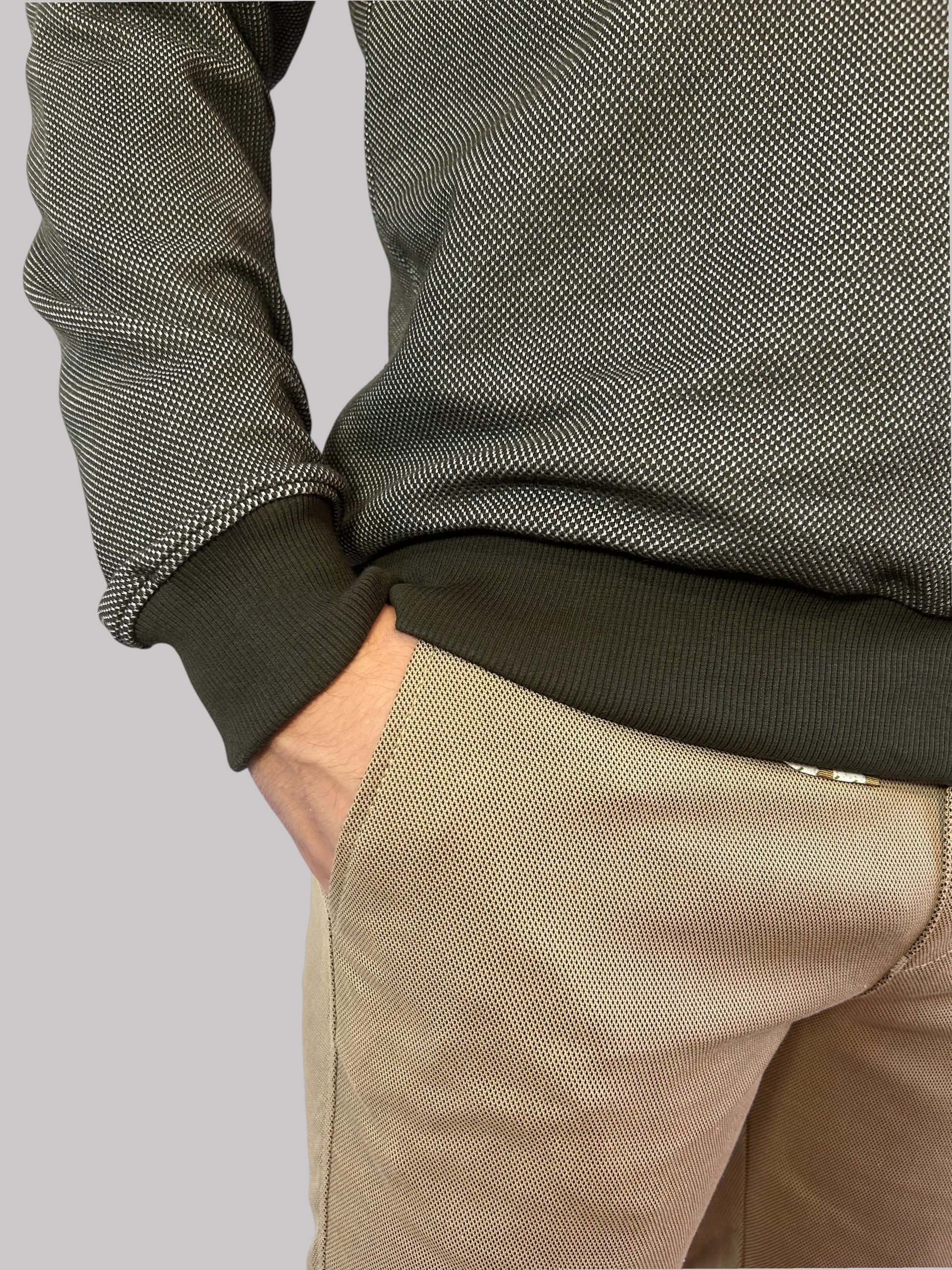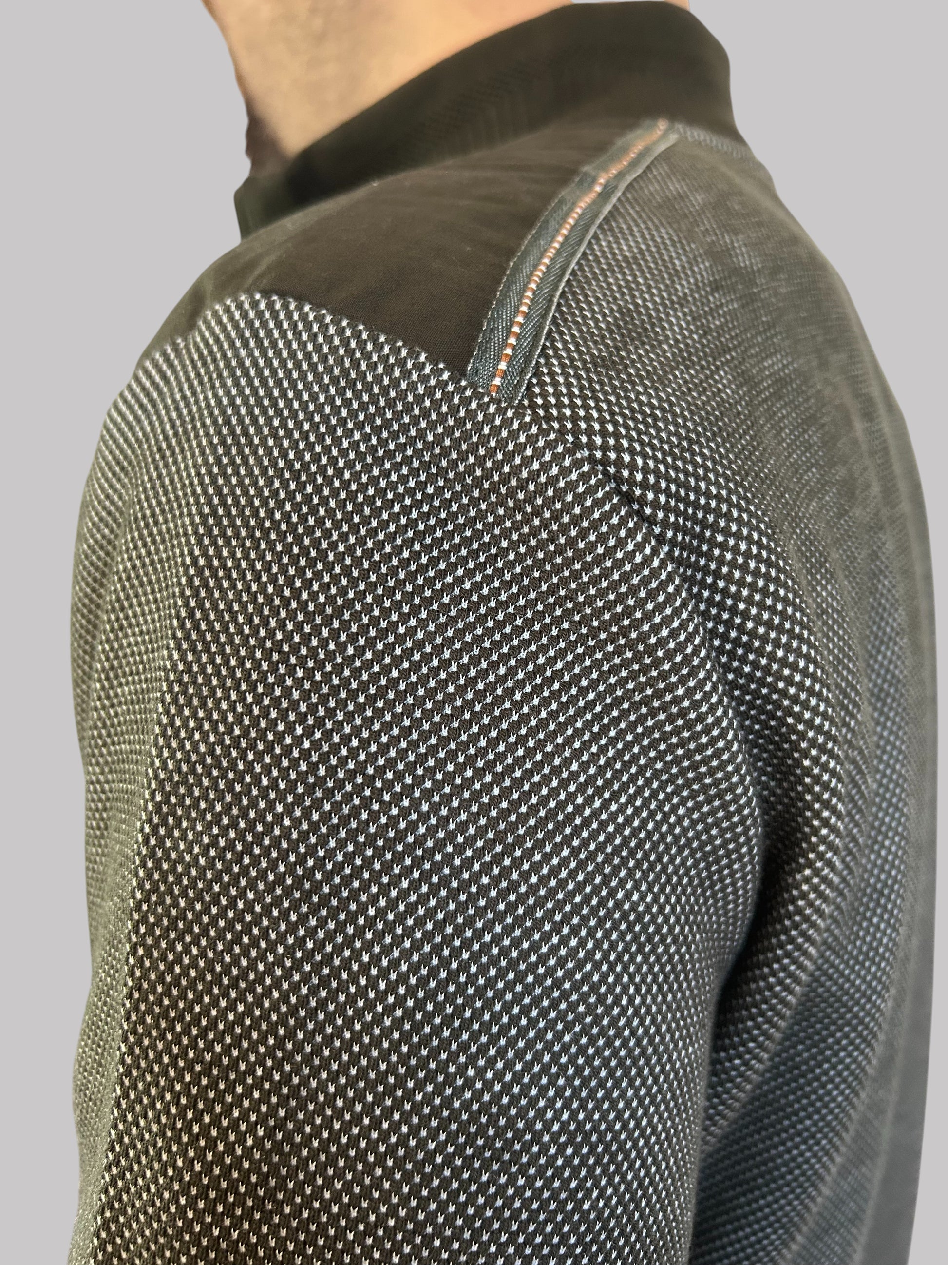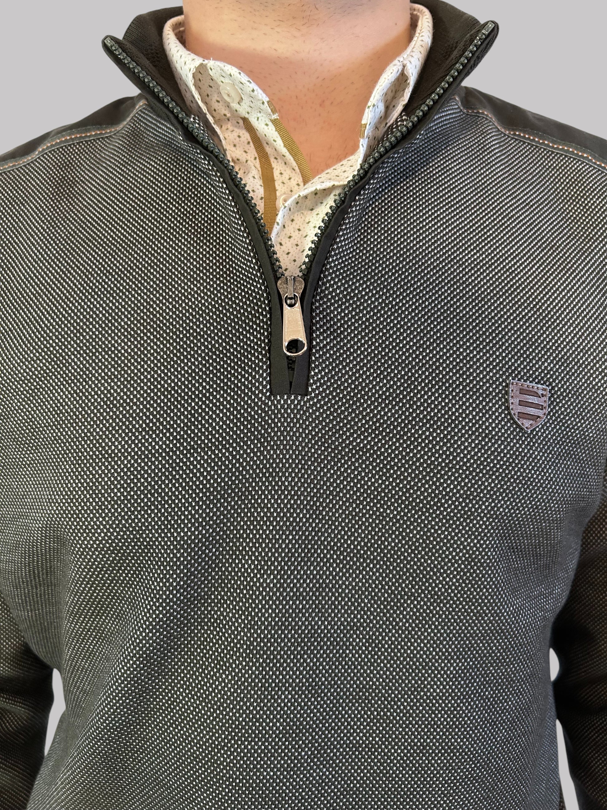Pólo de fecho em algodão cardado, de manga comprida, confecionado em Portugal. Toque macio e quente, ideal para os dias mais frios. Corte confortável e acabamento de alta qualidade.
