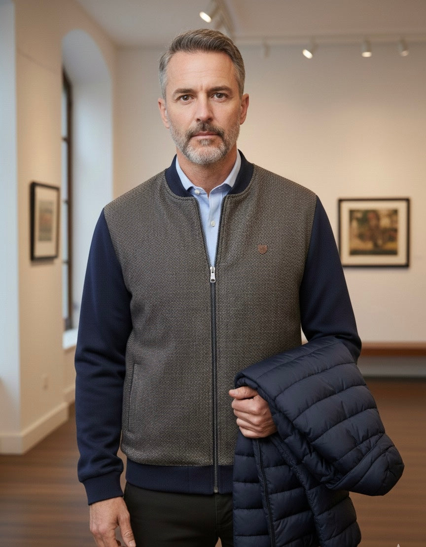 Casaco cardado em malha mescla, de confeção portuguesa. Apresenta fecho frontal de correr e dois bolsos laterais práticos. Confortável e versátil, ideal para os dias mais frescos. O acabamento cardado proporciona um toque suave e agradável, garantindo bem-estar e estilo em qualquer ocasião.
